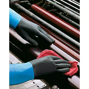 Neoprene and latex-coated palm. Excellent resistance to many chemicals. Tractor tread finish.