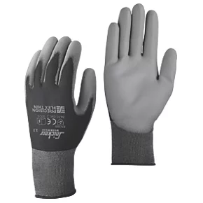 Extra thin and tight, seamless work gloves with extra fingertip feeling for precision work. Ventilating elastic polyamide on back of hand for superior comfort and freedom of movement. The microporous PU coating is abrasion-resistant and provides a secure grip and comfort. Tight elastic cuff for long lasting elasticity.